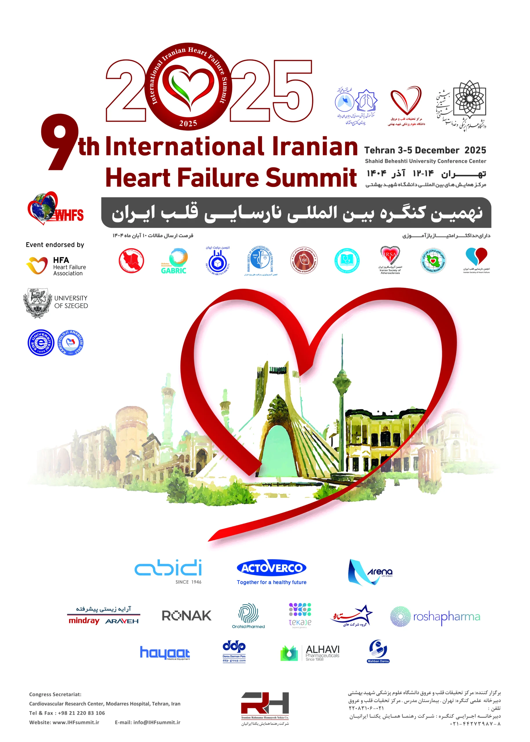 Don’t miss the final registration deadline! Ensure your spot at the 9th Iranian Heart Failure Summit and secure accommodation early. Join colleagues from around the world for this unique scientific gathering.